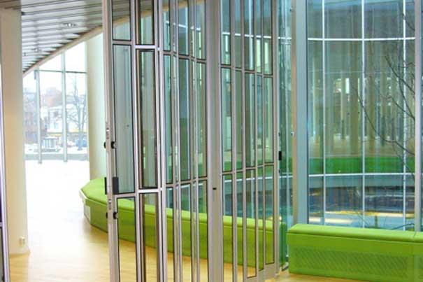 Folding Aluminum Closure model "Royal" offers excellent visibility and exceptional protection. This high performance tempered glass model is perfect for banks and stores, or any other location requiring both maximum visibility and secure closing.