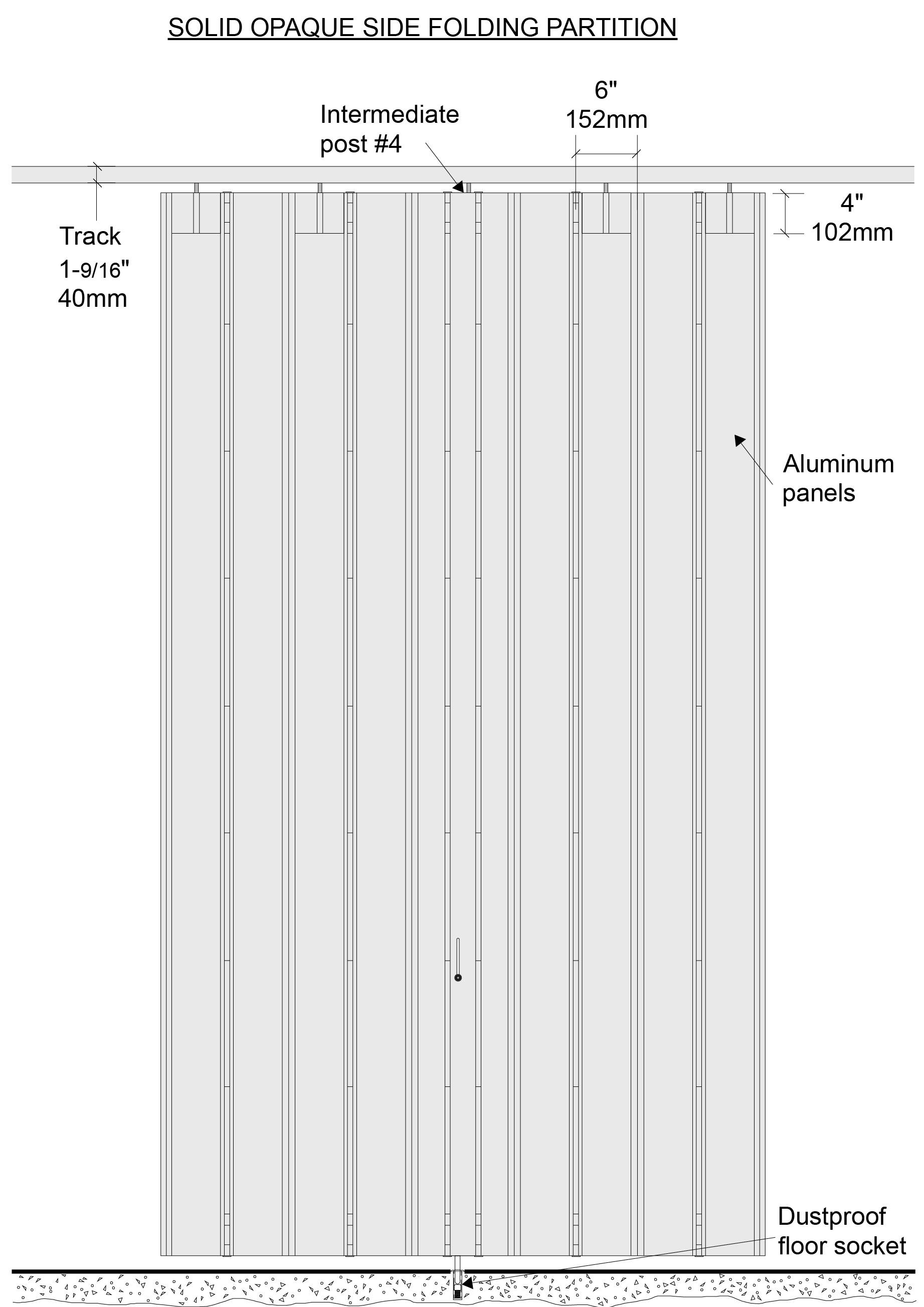 Folding Aluminum Closure model "Global" Protection from Prying Eyes. Total protection from prying eyes! With its full-height aluminum panels, this model is totally opaque. Ideal for banks, automatic teller machines, warehouses, reception rooms, etc.